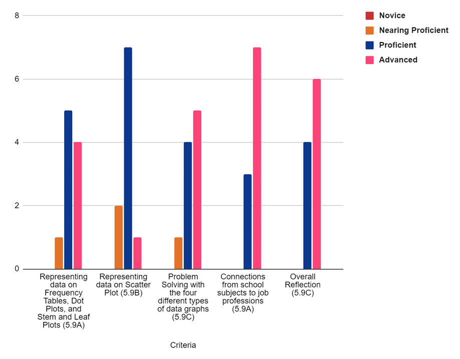 I designed and implemented a multi-phase assessment system aligned to TEKS 5.9A–C, incorporating formative, reflective, and summative components to evaluate both conceptual understanding and application of data analysis skills.